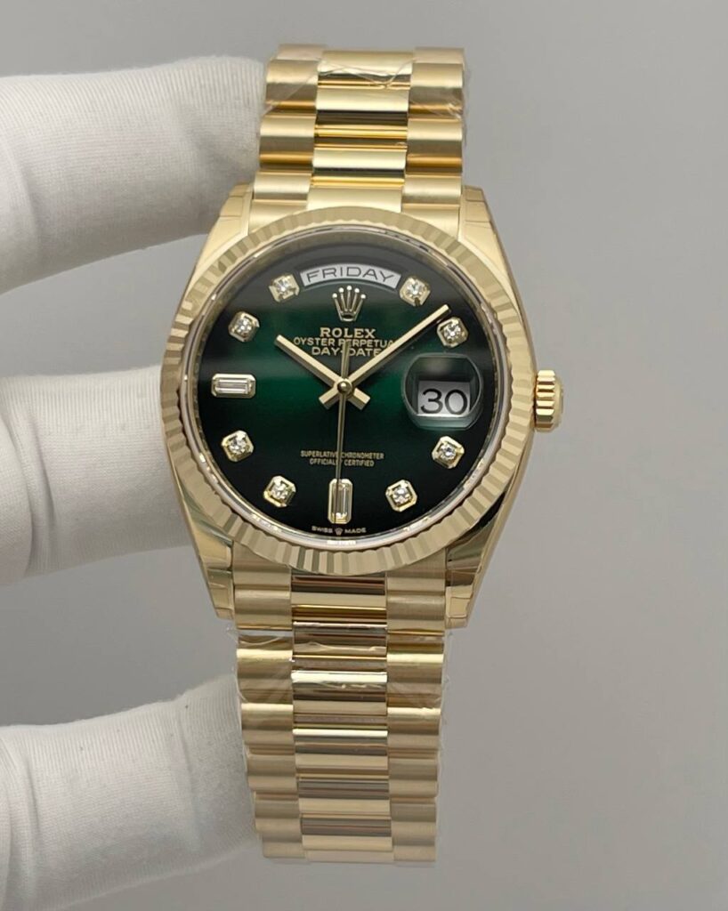 Rolex Daydate Green Dial Diamonds Numerals President Bracelet