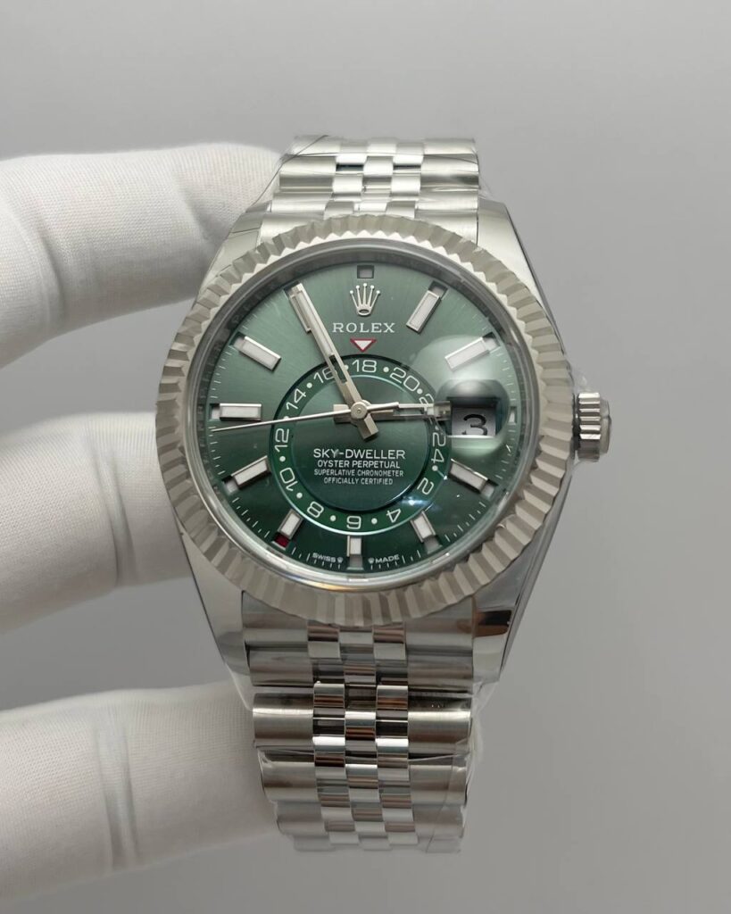 Rolex Sky-Dweller Gren Dial White Gold Bezel Stainless Steel