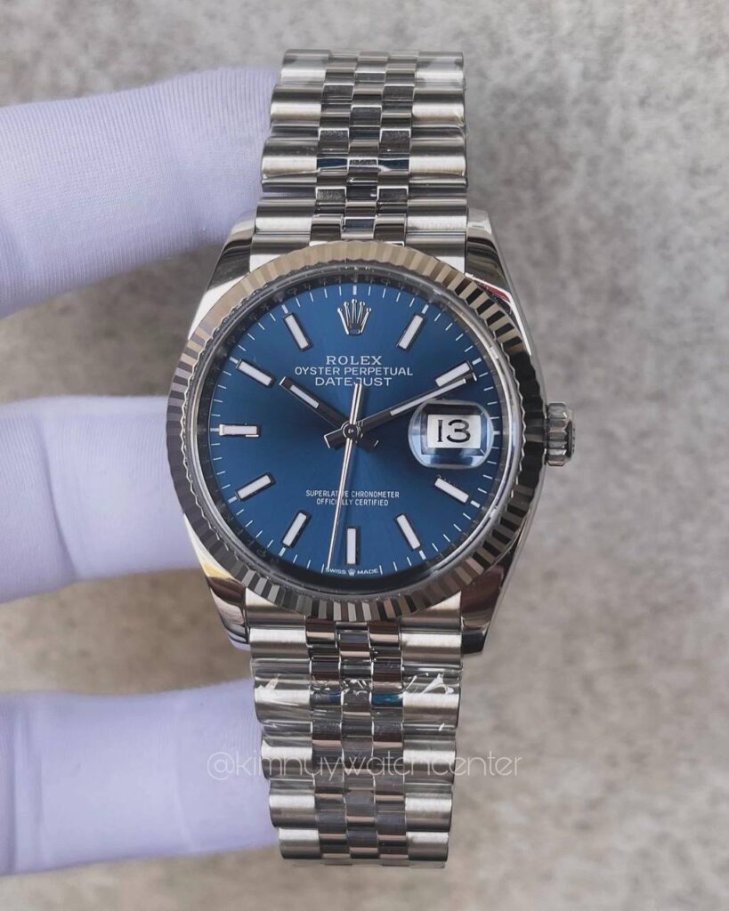 Rolex Datejust Blue Dial White Gold Bezel Stainless Steel