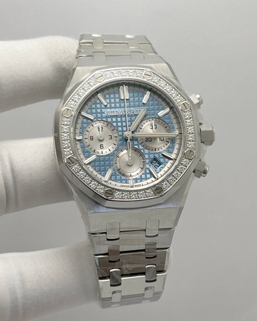 SKU01055 Audemars Piguets Royal Oak 26715ST Chrono Diamonds Bezel Ice Blue Dial