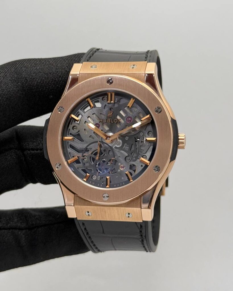 Hublot Classic Fusion Ultra Thin Skeleton Dial Rose Gold Alligator