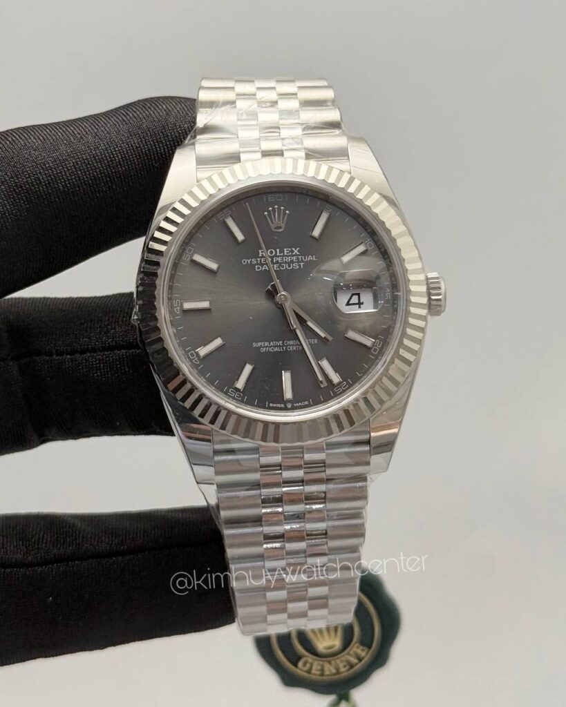 Rolex Datejust Grey Dial Fluted White Gold Bezel