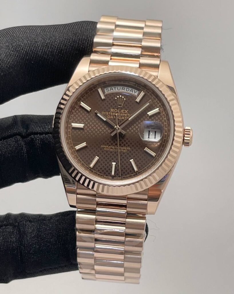 Rolex Daydate Chocolate & Motif Dial Everose Gold Presidental Bracelet