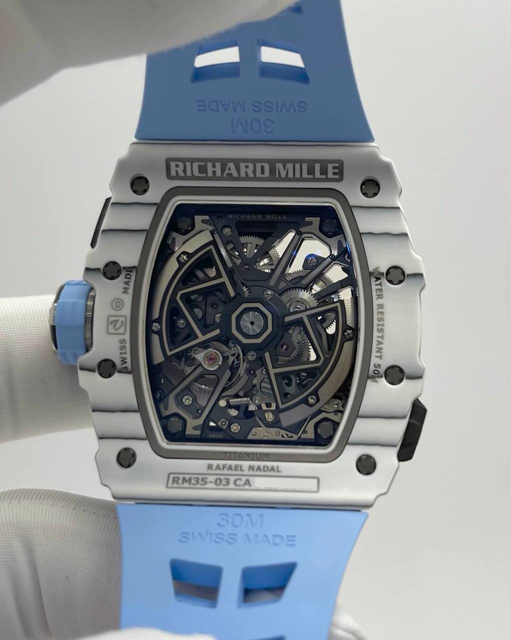 Richard Mille RM35-03 White Carbon Sky Blue Rubber Strap