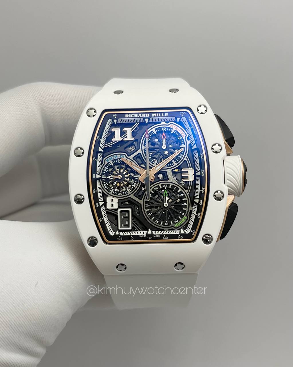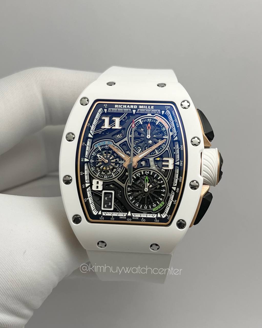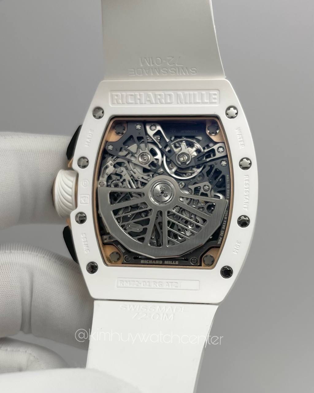 Richard Mille RM72-01 Chronograph White Ceramic and Rose Gold Rubber Strap Butterfly Buckle